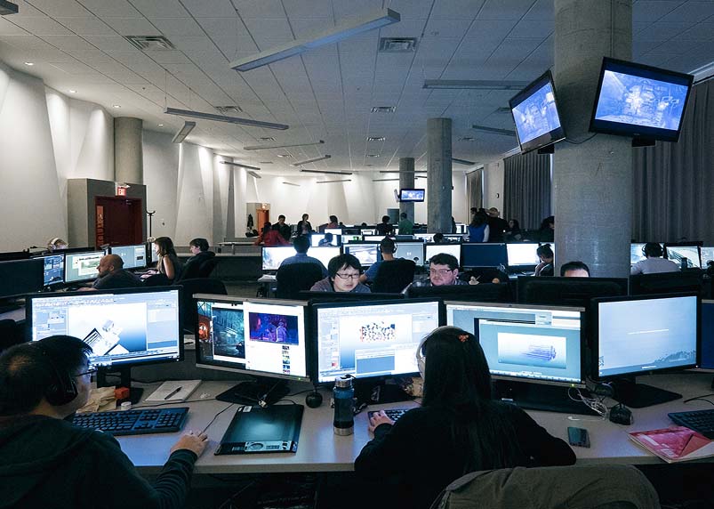 Go beyond computer labs and classrooms. VFS’s Production Centre gets you creating & collaborating in a real studio environment from day one, working with industry-level tools in pro-grade spaces: motion capture volume, render farm, 180° green screen studio, black box sets, Unreal Engine & Unity labs, & more.